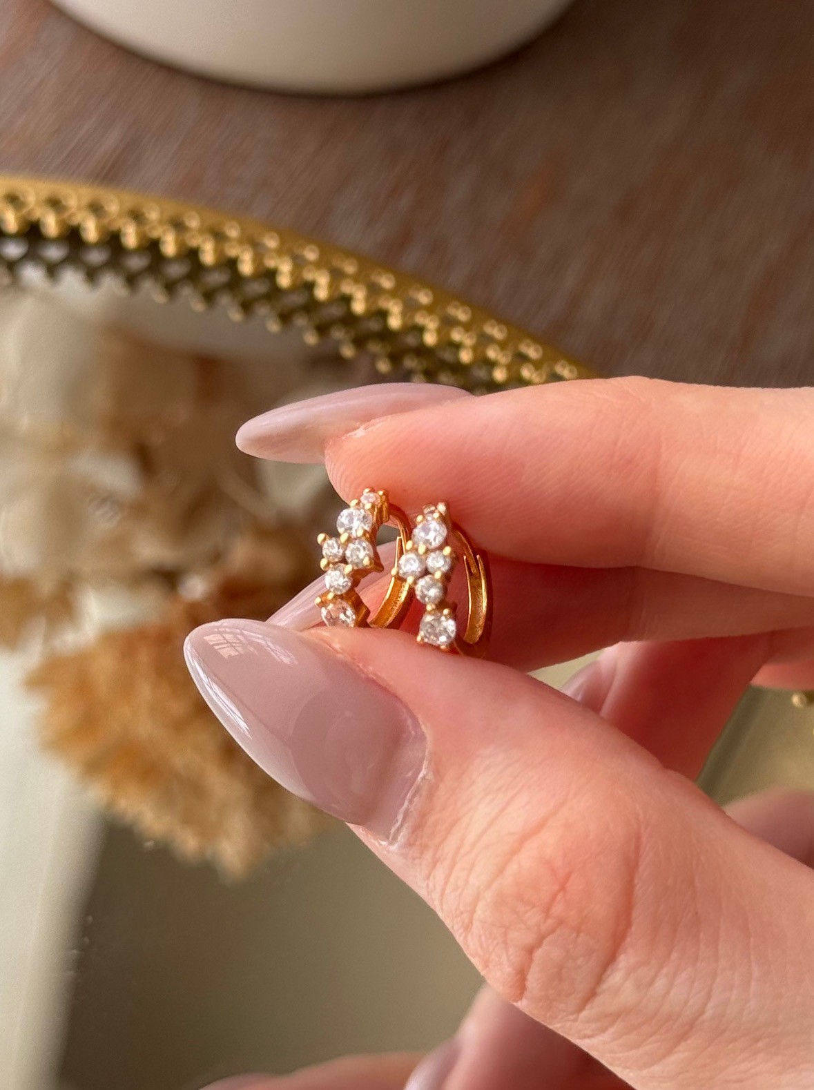 S925 Star Diamond Gold Hoops 星晨點點耳環